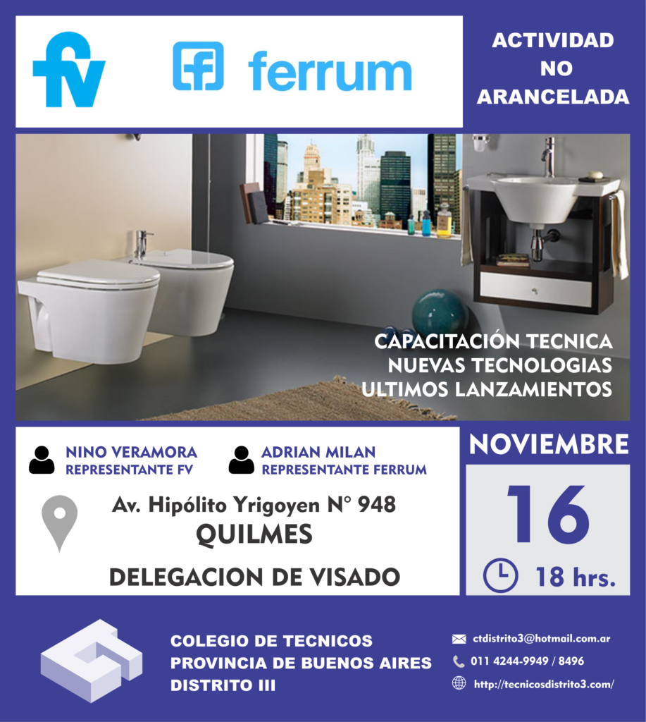 El Distrito III tiene el agrado de invitarlos a la charla de la firmas FV y Ferrum a realizarse: