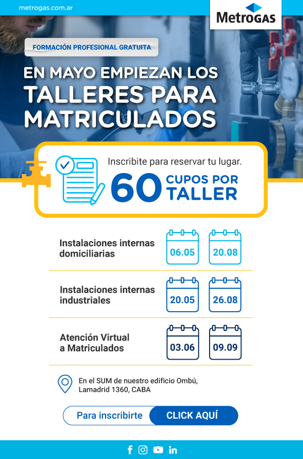 Metrogas: talleres para matriculados 5 mayo, 2025 Desactivado Por Distrito 3 San Vicente: Cambio de día de visado de Construcciones Cañuelas: Jueves 8 cambio de horario Construcciones
