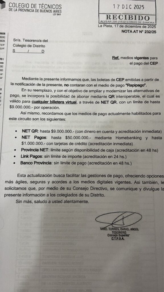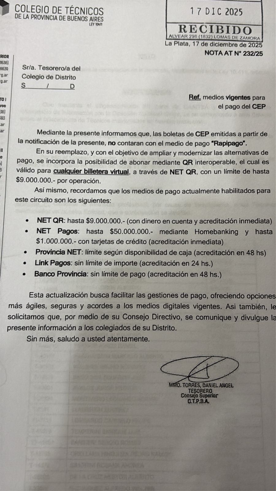 Se informa que a partir del 17 de diciembre, las boletas de CEP emitidas no contaran con el medio de pago Rapipago.
