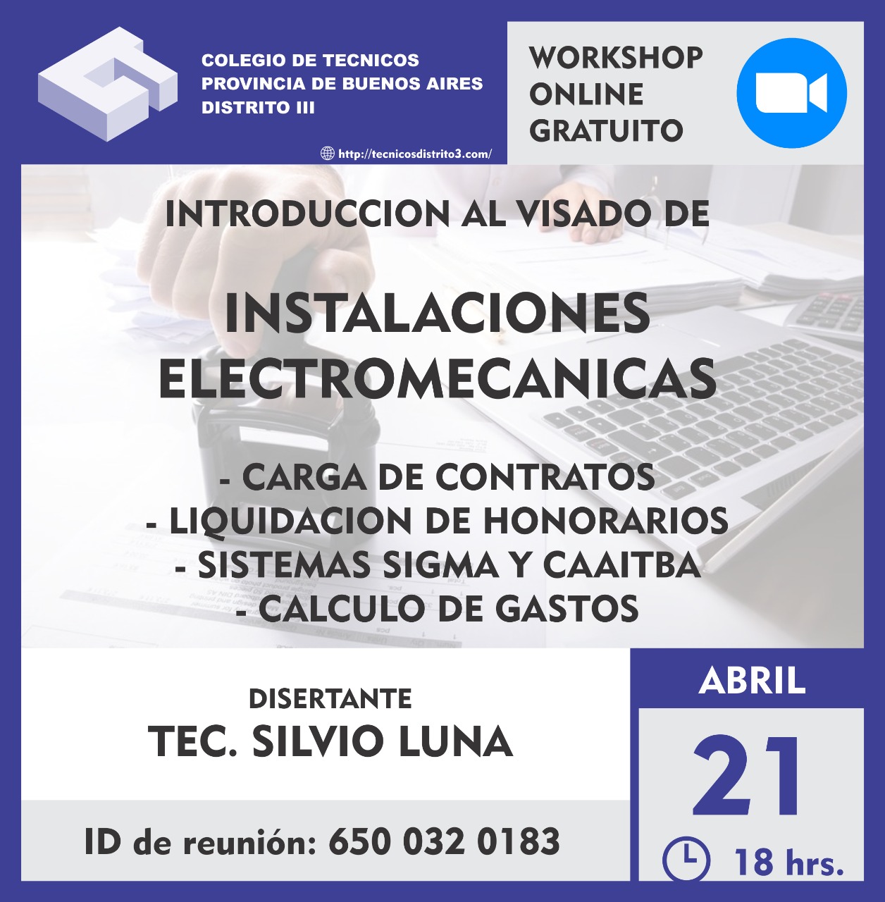 Dejamos a continuación la invitación a la charla introductoria al visado de Instalaciones Electromecánicas.