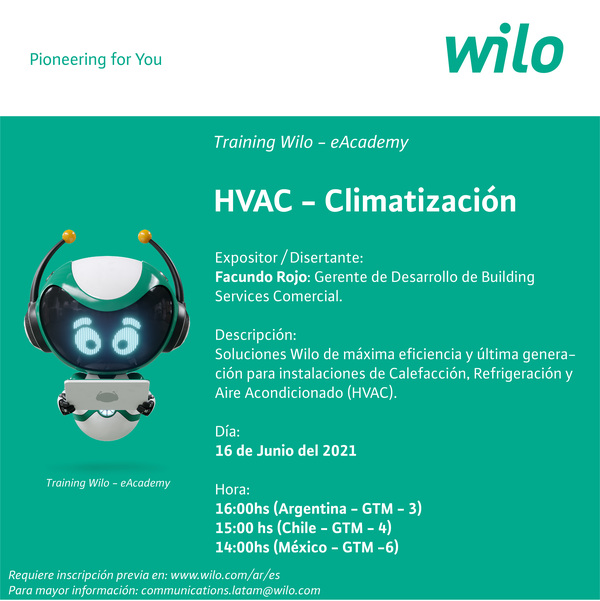 La Cámara Argentina de las Instalaciones para Fluidos (CAIF) los invitan a participar del Webinar Gratuito que dictará la asociada Wilo Salmson Argentina S.A.